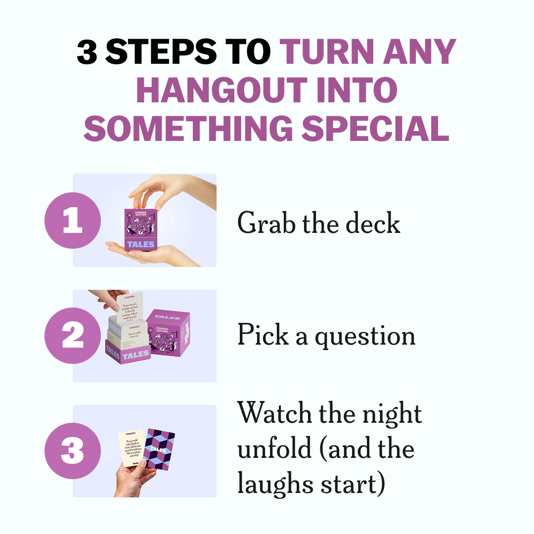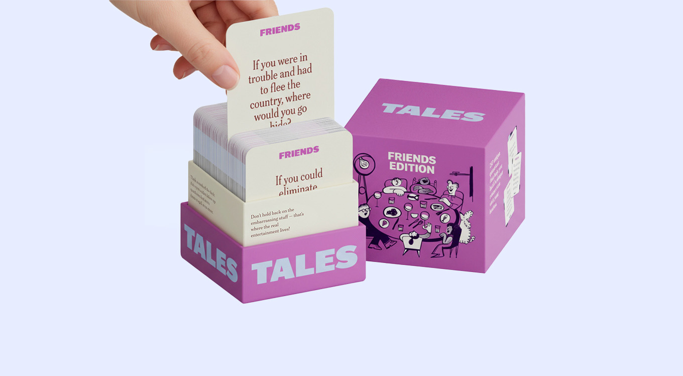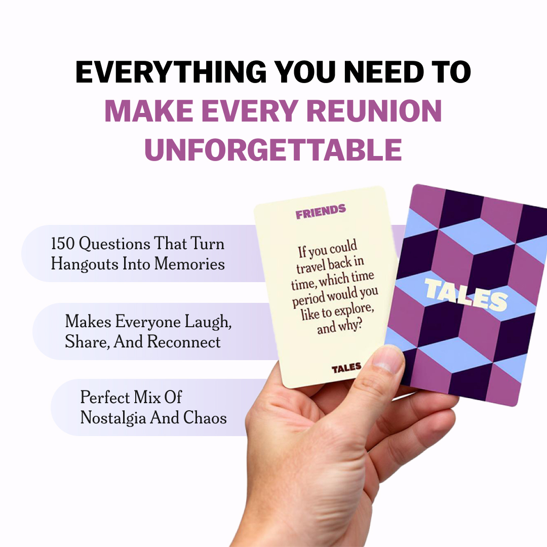 Whether it’s dinner, a holiday, or just a quiet night in, Tales helps your family talk, laugh, and bond the old-fashioned way.